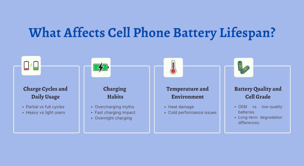Together, these factors explain why some phone batteries last three years while others struggle after eighteen months, even under similar usage conditions.