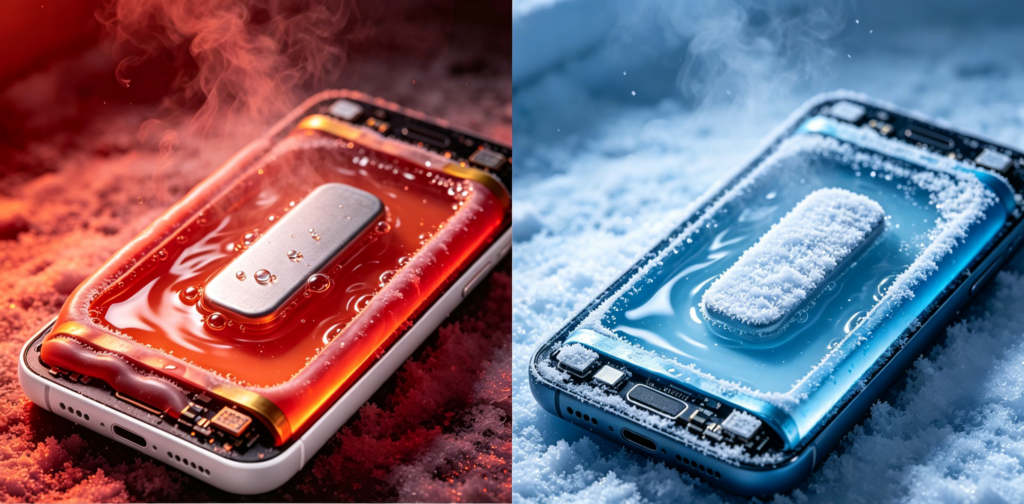 Cold temperatures temporarily reduce battery performance and power output. While cold does not permanently damage the battery as heat does, repeated extreme temperature changes can affect long-term reliability.